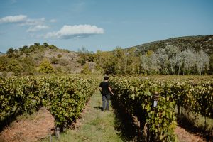 Et puis il y a le projet le plus singulier, celui qui dit tout à la fois de l’engagement et de la poésie du lieu : la vigne-cœur. Sur une ancienne piste de parapente, au pied du Castellas de Montoulieu, François a planté à la main une parcelle vertigineuse (40 % de pente), choisissant des plants de Voltis naturellement résistants. Pas de palissage ni de métal, mais une plantation en gobelet, à l’ancienne, protégée au départ par des feutres biodégradables pour laisser le temps aux racines de s’ancrer. Vue d’en bas, la vigne dessine un immense cœur végétal, hommage à Dionysos et clin d’œil à l’origine antique