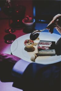 La cuisine de Michel Sarran accompagne le parcours immersif avec subtilité et précision. Chaque plat est imaginé pour s’intégrer dans un tableau, révélant son menu uniquement au moment de l’expérience. Les ingrédients sont locaux, frais et choisis pour leur qualité, tandis que la vaisselle a été conçue sur mesure pour mettre en valeur chaque création, en résonance avec les univers traversés tout au long de l’expérience.