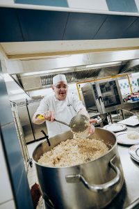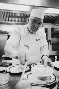 Le repas Prestige d’Octobre Rose avec Gérard Cabiron et les collègues. On a cuisiné puis mangé ensemble : œufs brouillés à la truffe, Saint-Jacques, ballotine de poulet, pain perdu brioché… Un moment de convivialité incroyable. La cuisine rassemble.