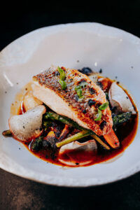 Ce vin blanc allie fraîcheur, finesse et puissance aromatique qui vont sublimer la délicatesse du rouget sans l’écraser. La vivacité du vin et son acidité maîtrisée équilibrent le gras naturel du poisson et apportent une sensation de légèreté en bouche. Ainsi, ce vin offre un mariage de finesse, de fraîcheur et de précision aromatique, révélant toute la subtilité et l’équilibre de ce plat printanier.
