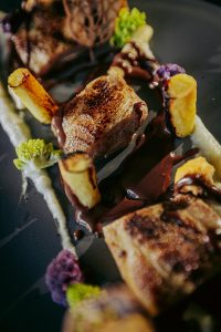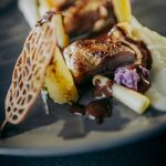 / 9. Avant le service de votre assiette, faire poêler le suprême de faisan et laisser reposer 3 mn avant de le trancher.